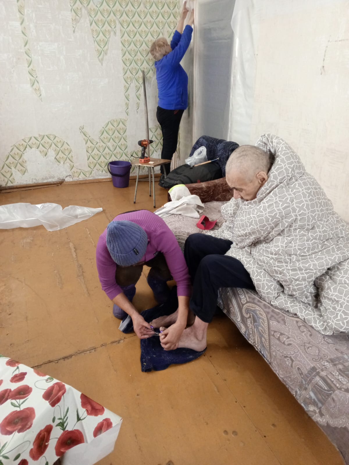 25 ноября в составе бригады социальных работников Шафранской Натальи, Назаровой Юлии и Ивановой Натальи была проведена работа по уборке квартиры, Александра Николаевича помыли, подстригли, переодели и т.д.